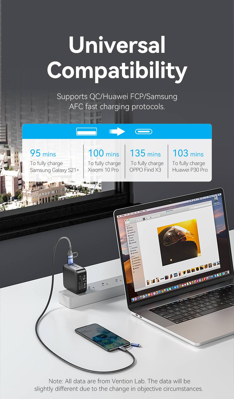 Supports QC/Huawei FCP/Samsung AFC fast charging protocols.