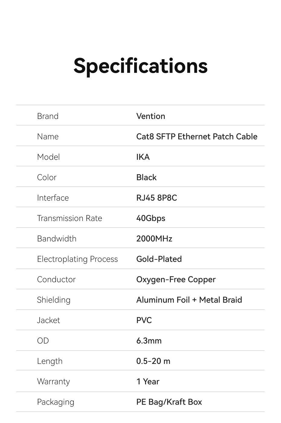 Tính năng Cáp Mạng Cat8 SFTP VENTION IKA (40Gbps)