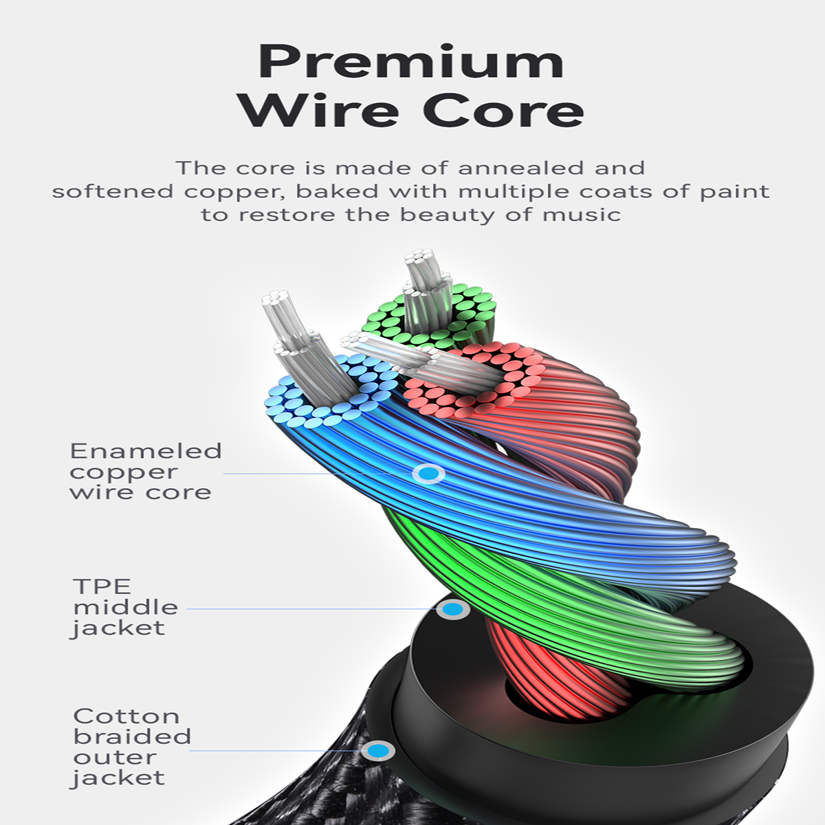 Dây cáp được làm từ vật liệu cotton braided (dệt bằng sợi bông), tạo nên một vẻ ngoài bền bỉ và sang trọng. Đồng thời, vật liệu này cũng giúp cho dây cáp không bị rối, dễ dàng bảo quản và sử dụng. Chiều dài của dây cáp là 1m, đủ dài để kết nối các thiết bị âm thanh một cách linh hoạt và thuận tiện.