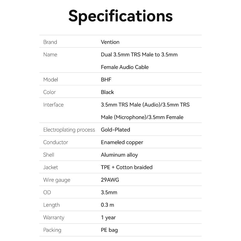 Dual 3.5mm TRS Male to 3.5mm Female Audio Cable