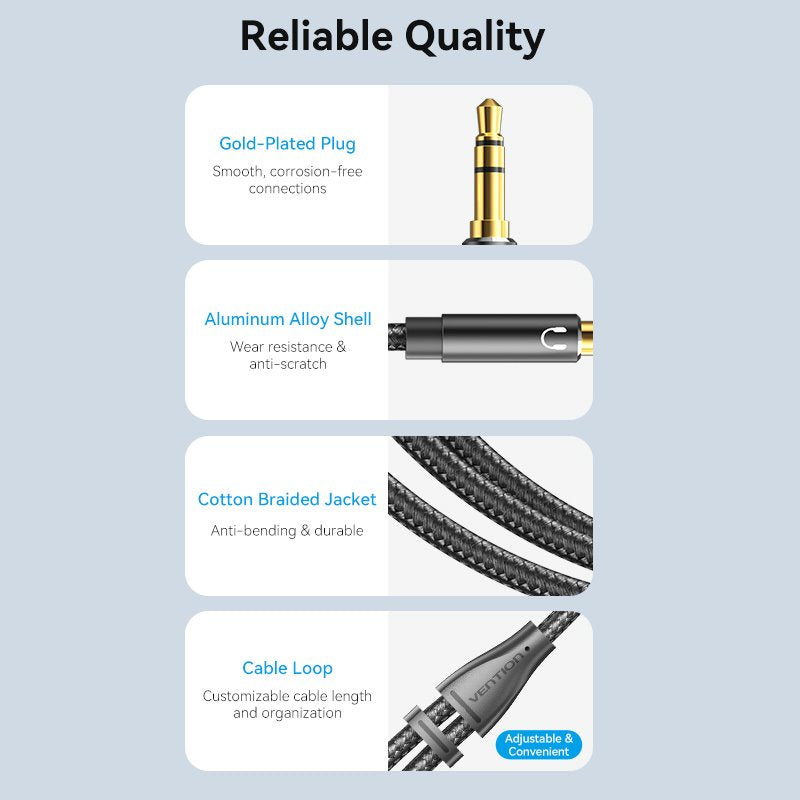 It offers support for both audio playback and microphone input through a single cable.