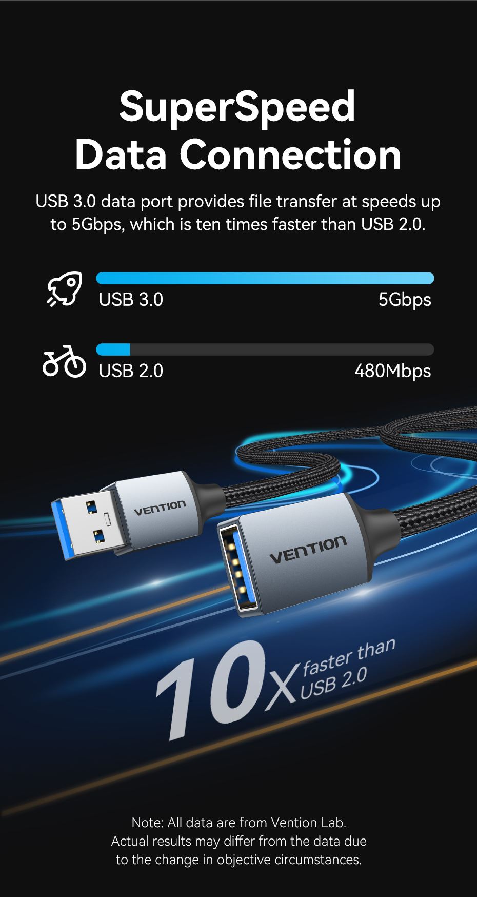 USB 3.0 data port provides file transfer at speeds up to 5Gbps, which is ten times faster than USB 2.0.
