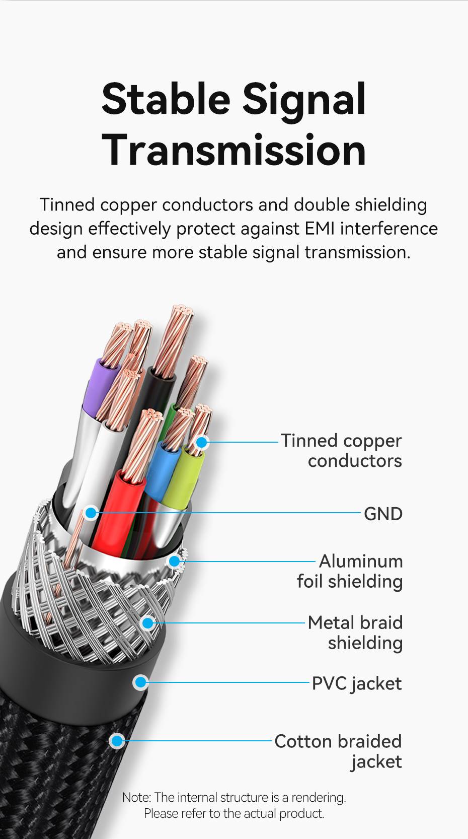 Tinned copper conductors and double shielding design effectively protect against EMI interference and ensure more stable signal transmission.