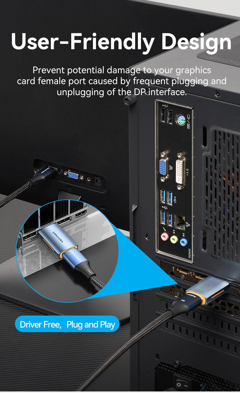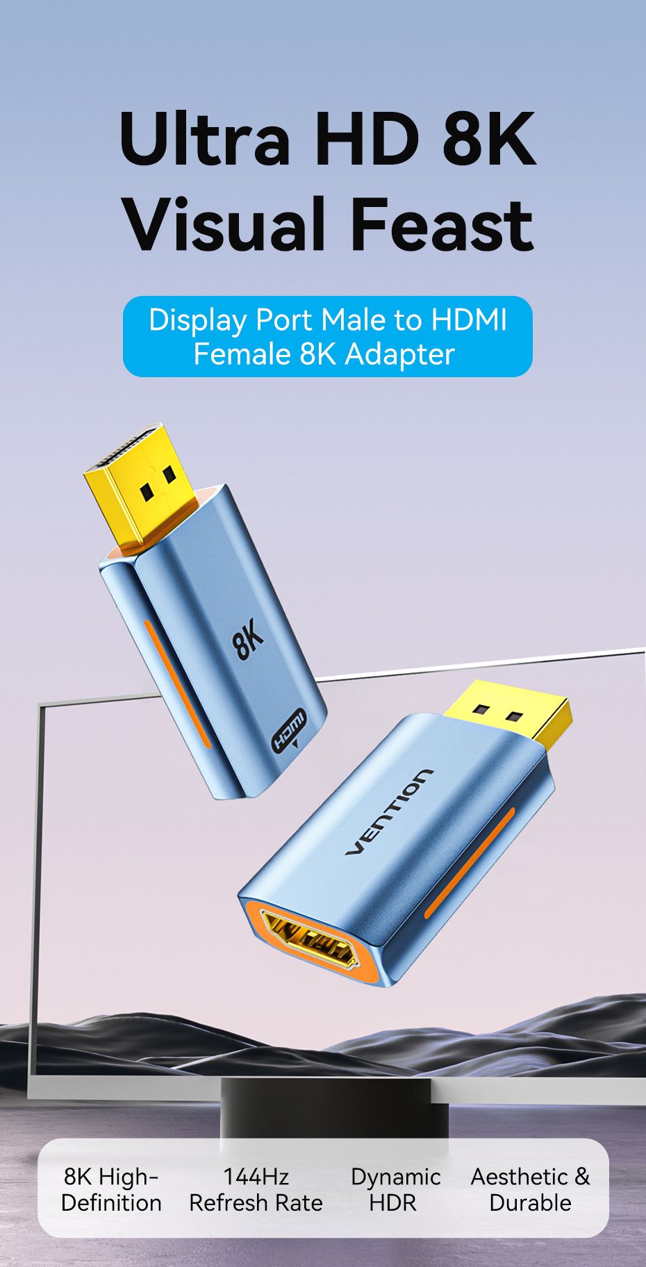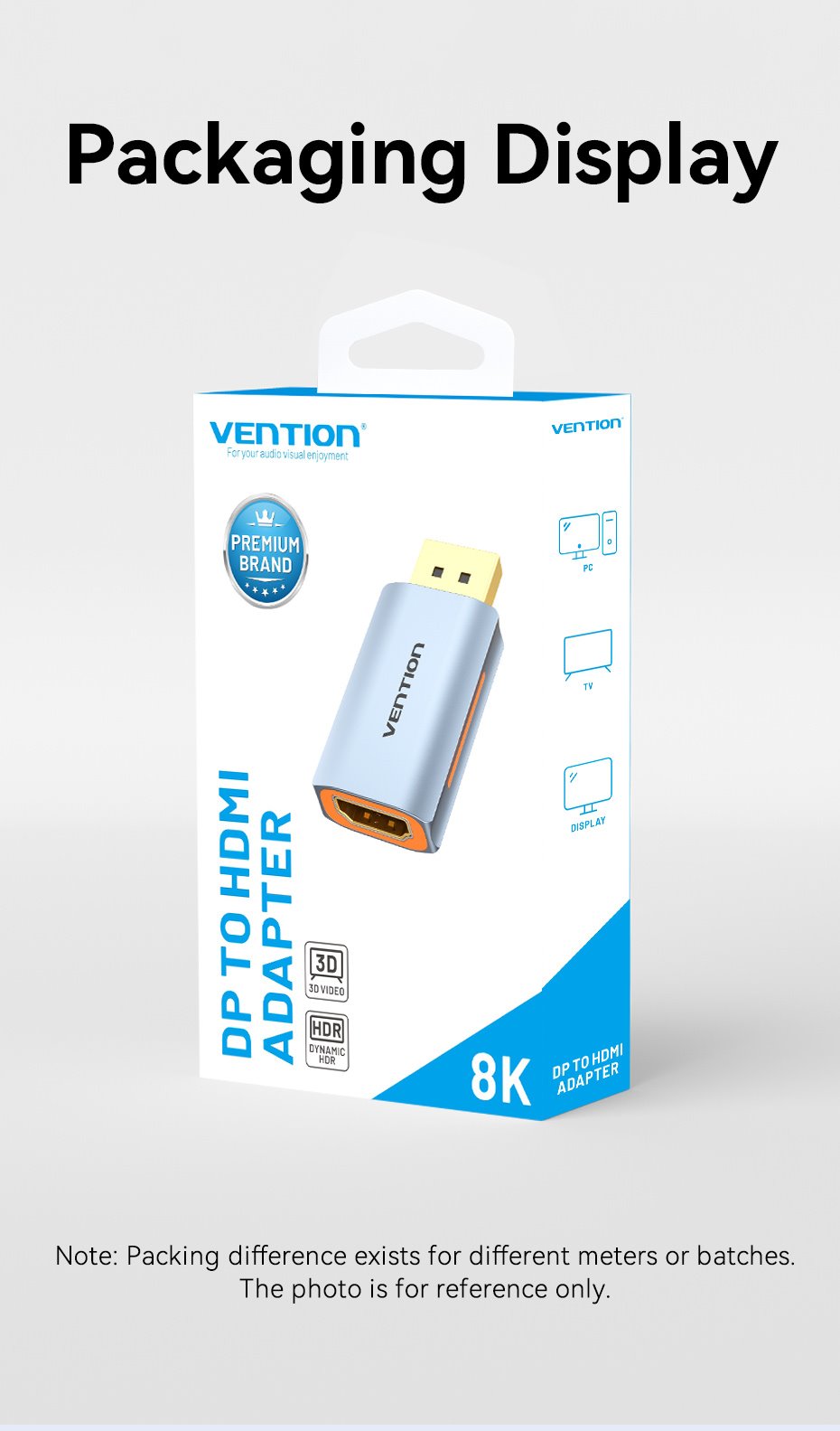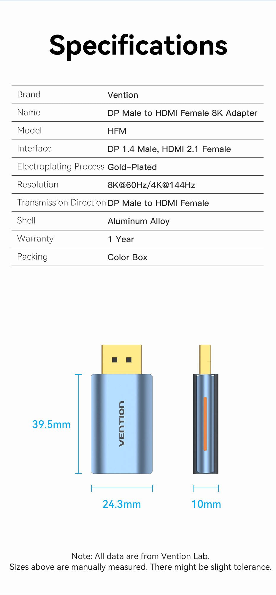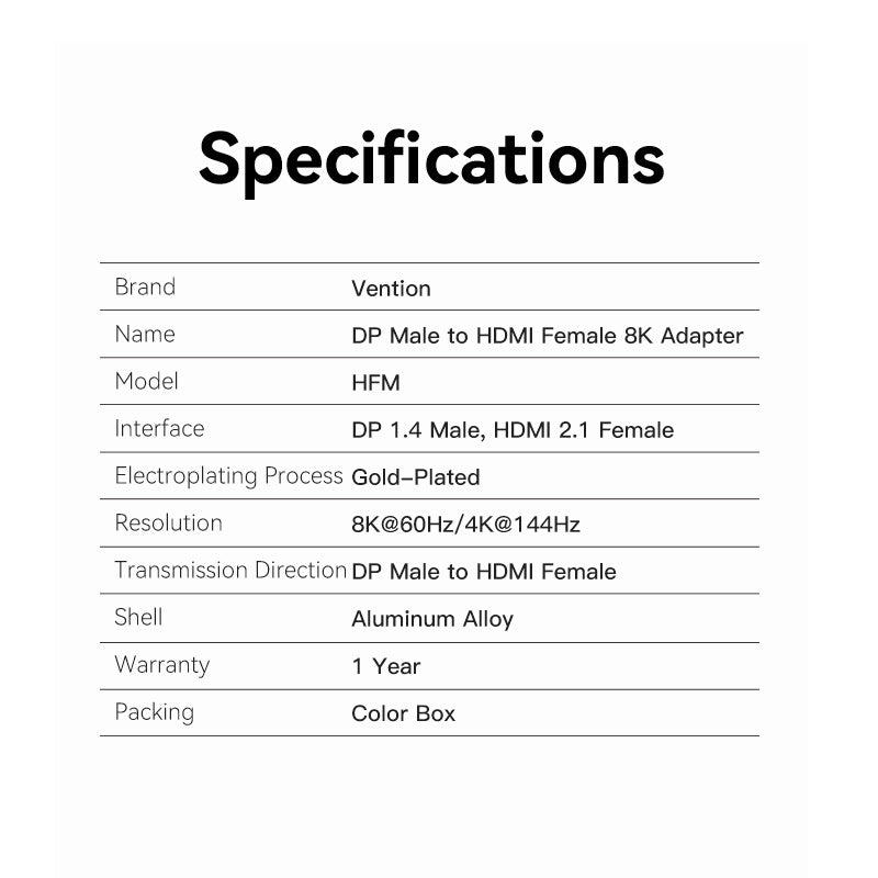 • Tên tiếng Việt: Đầu chuyển DisplayPort sang HDMI Vention DP Male to HDMI-A Female 8K Adapter - HFM ( 8K@60Hz/ 4K@144Hz, DP1.4 Male to HDMI2.1)