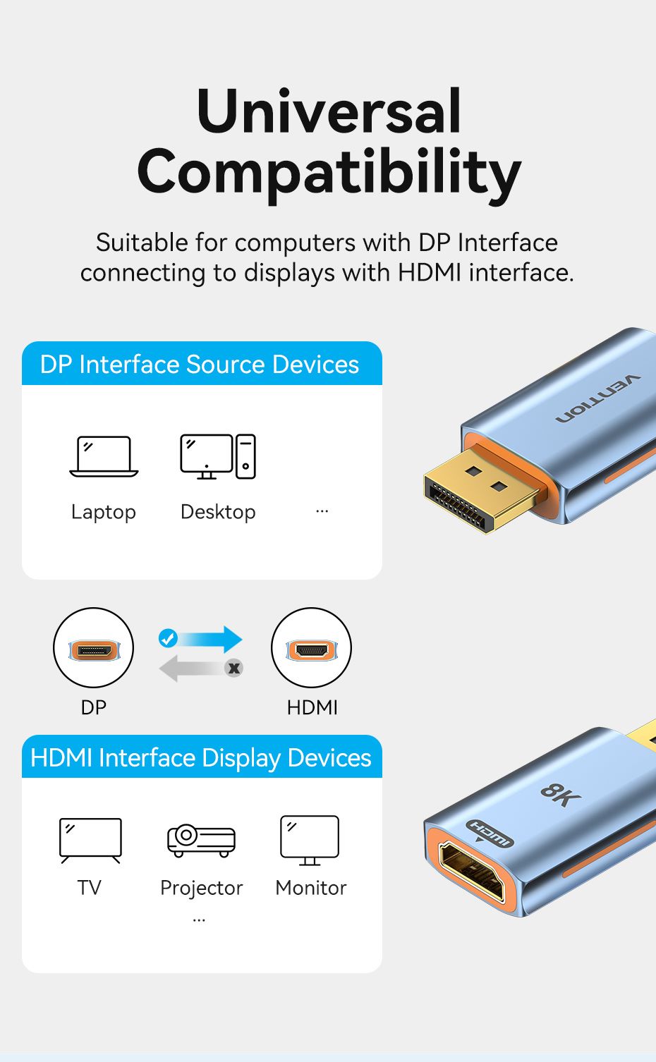 Vention DP Male to HDMI-A Female 8K Adapter Gray Aluminum Alloy Type ( HFM-H0 )