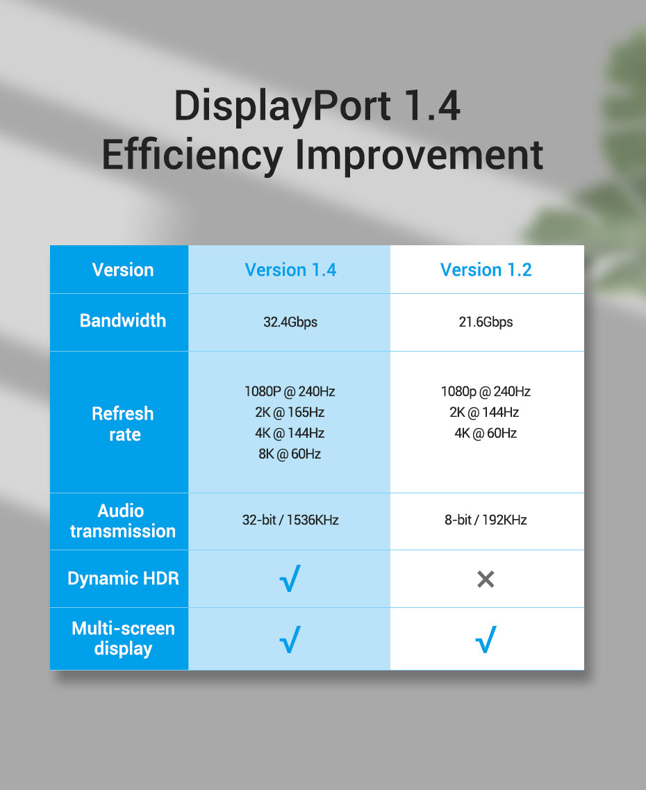 Tính năng Cáp DisplayPort1.4 8K VENTION HCA (8K@60Hz, 32.4Gbps, Dynamic HDR, 32-bit Audio Channel, Support 3D)