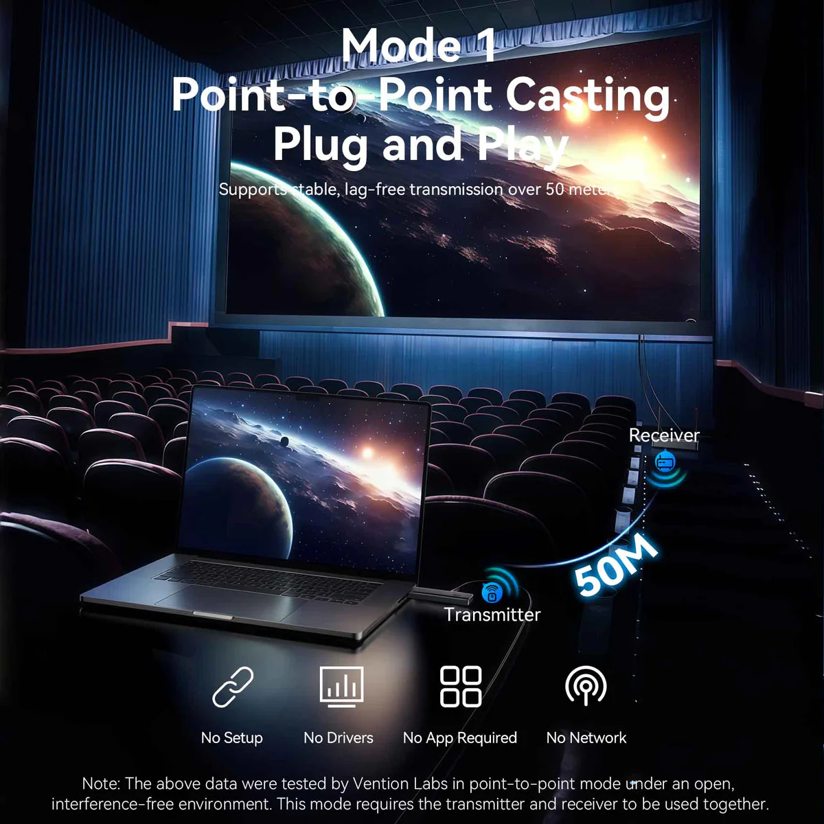 Hỗ trợ truyền tải ổn định, không độ trễ trong phạm vi hơn 50 mét, lý tưởng cho các không gian lớn.