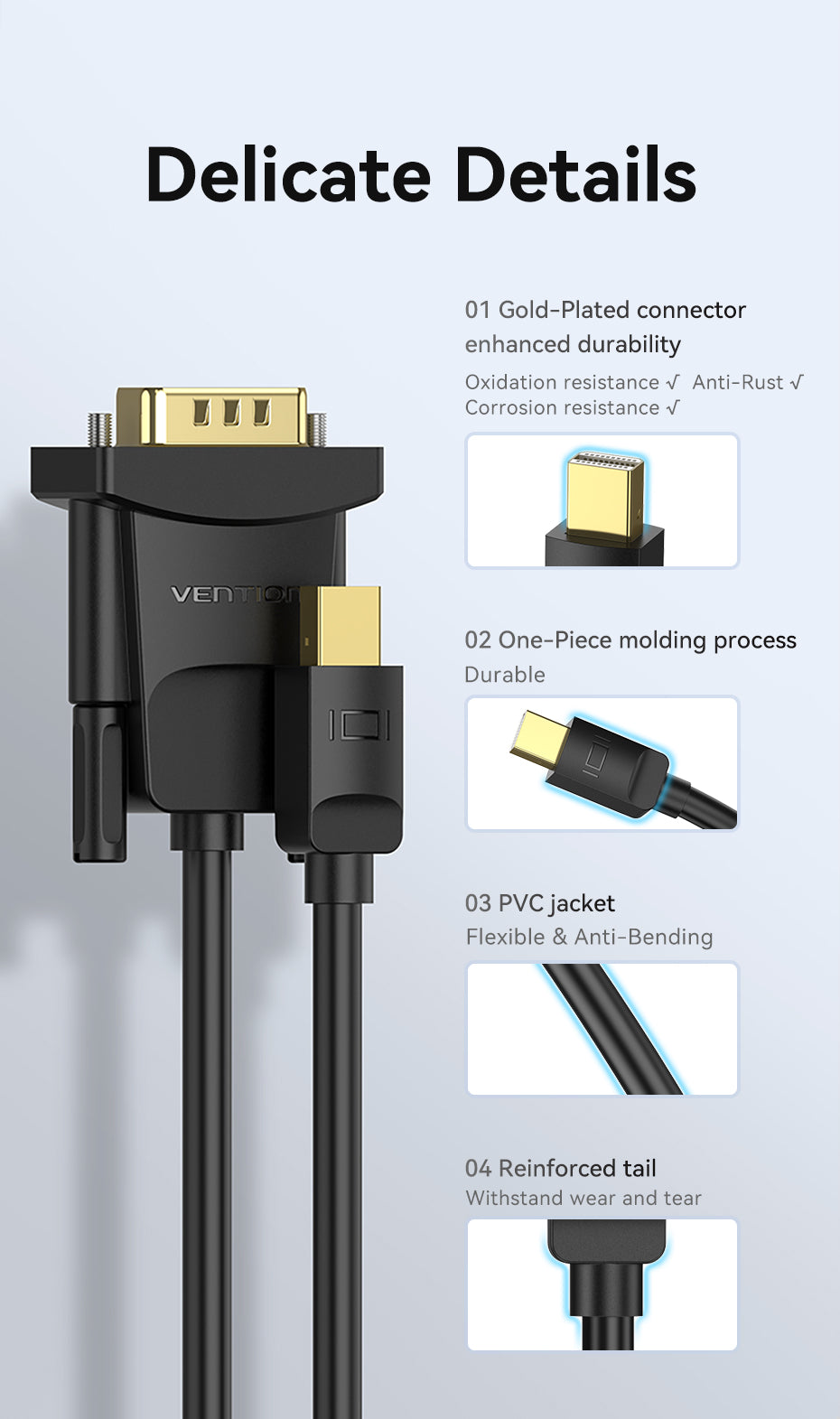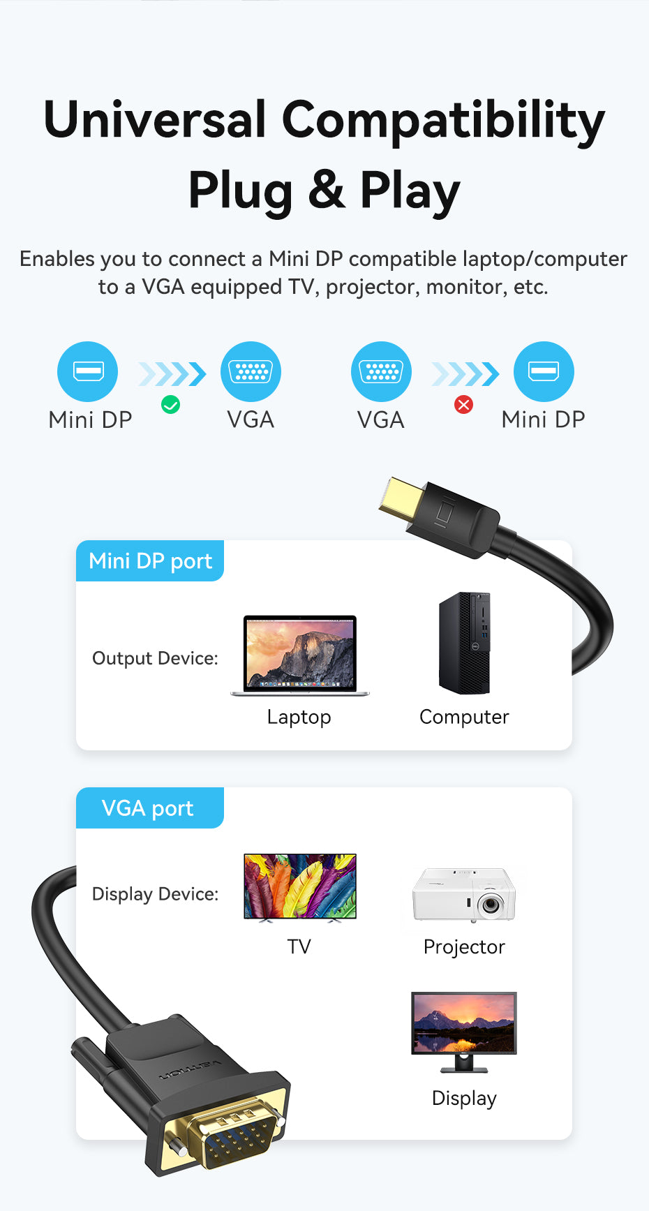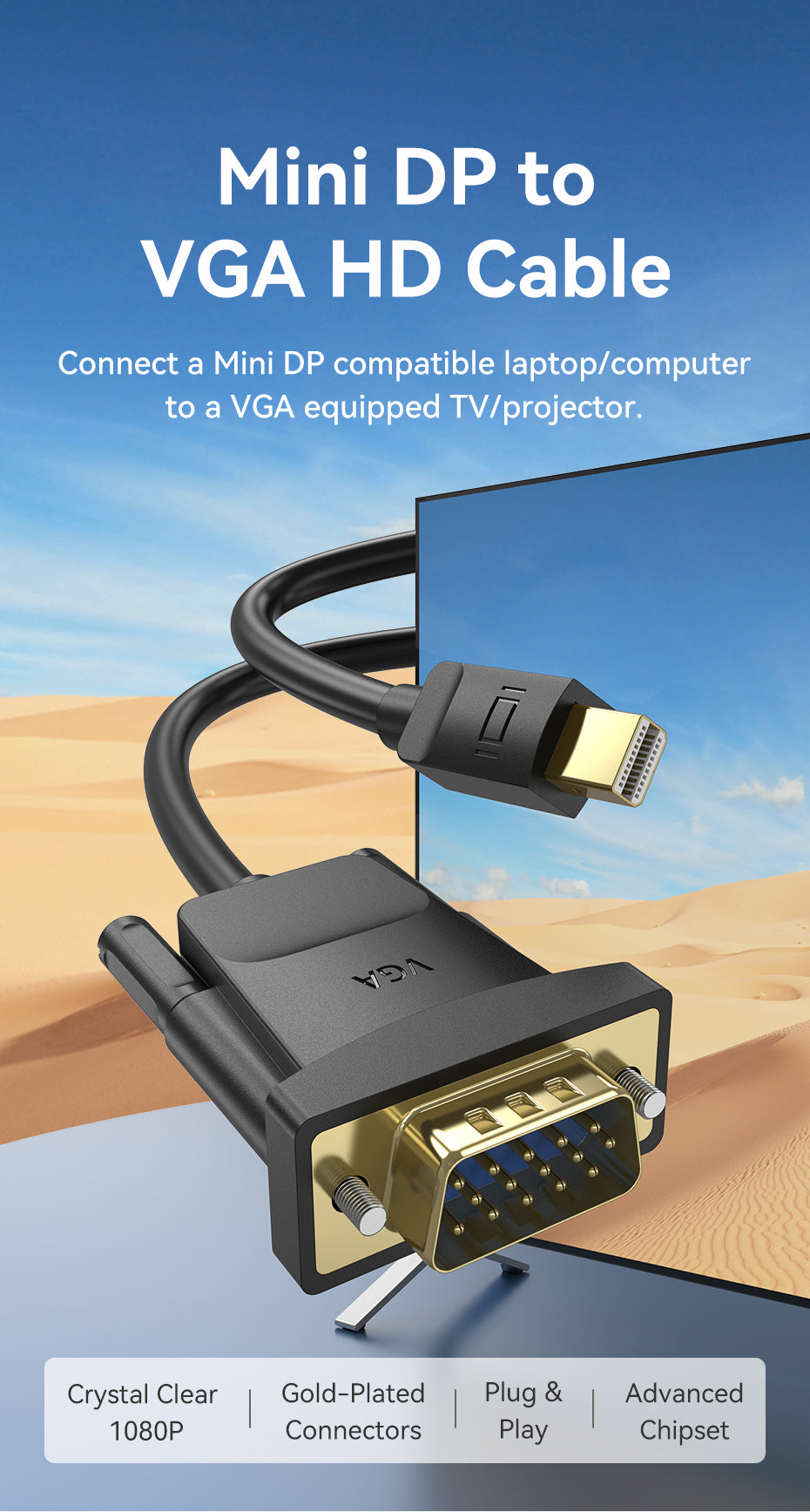 • Tên tiếng Việt: Mini DP Male to VGA Male HD Cable for laptop computer TV