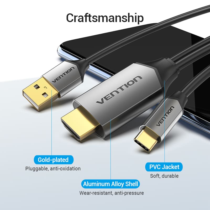 Vention Cotton Braided USB-C to HDMI-A 4K HD Cable 1M Gray Aluminum Alloy Type ( CRH-HF )