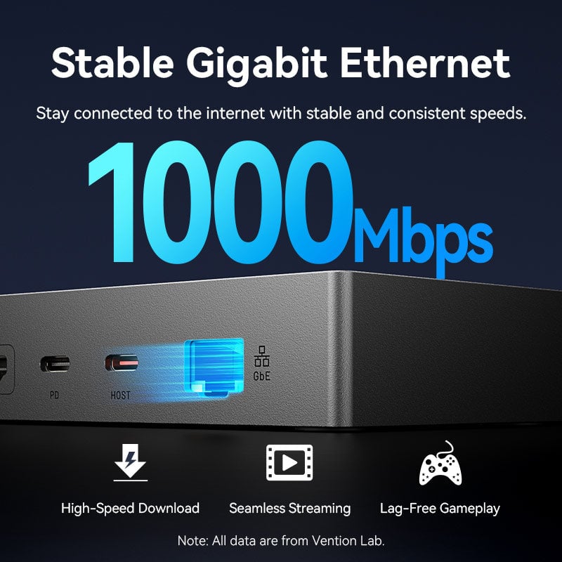 Không giống các hub 5Gbps thông thường, VENTION TPW được trang bị các cổng dữ liệu chuẩn USB 3.2 Gen2 với tốc độ lên đến 10Gbps, nhanh gấp đôi: 1 x USB-A 3.2 Gen2 (10Gbps), 2 x USB-C 3.2 Gen2 (10Gbps, Data)