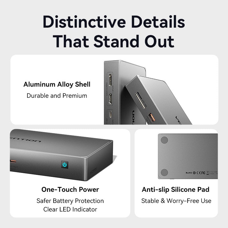 VENTION TPW là một trạm chuyển đổi 11-trong-1 chuyên nghiệp, được thiết kế để phá vỡ mọi giới hạn kết nối, đặc biệt là cho các tác vụ đồ họa và đa màn hình. Với việc tích hợp công nghệ DisplayLink cao cấp, hub này cho phép xuất hình ảnh đa màn hình độc lập ngay cả trên các thiết bị MacBook M1/M2/M3 hoặc Windows, cùng với hàng loạt cổng kết nối tốc độ siêu cao 10Gbps.