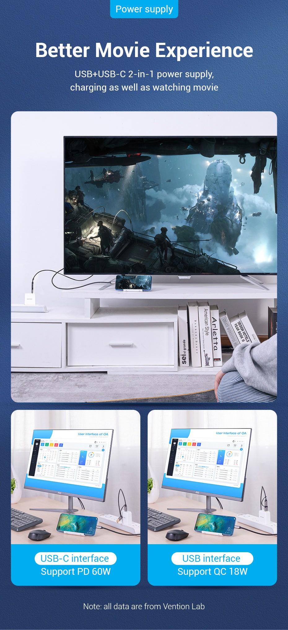 With USB+USB-C 2-in-1 power supply