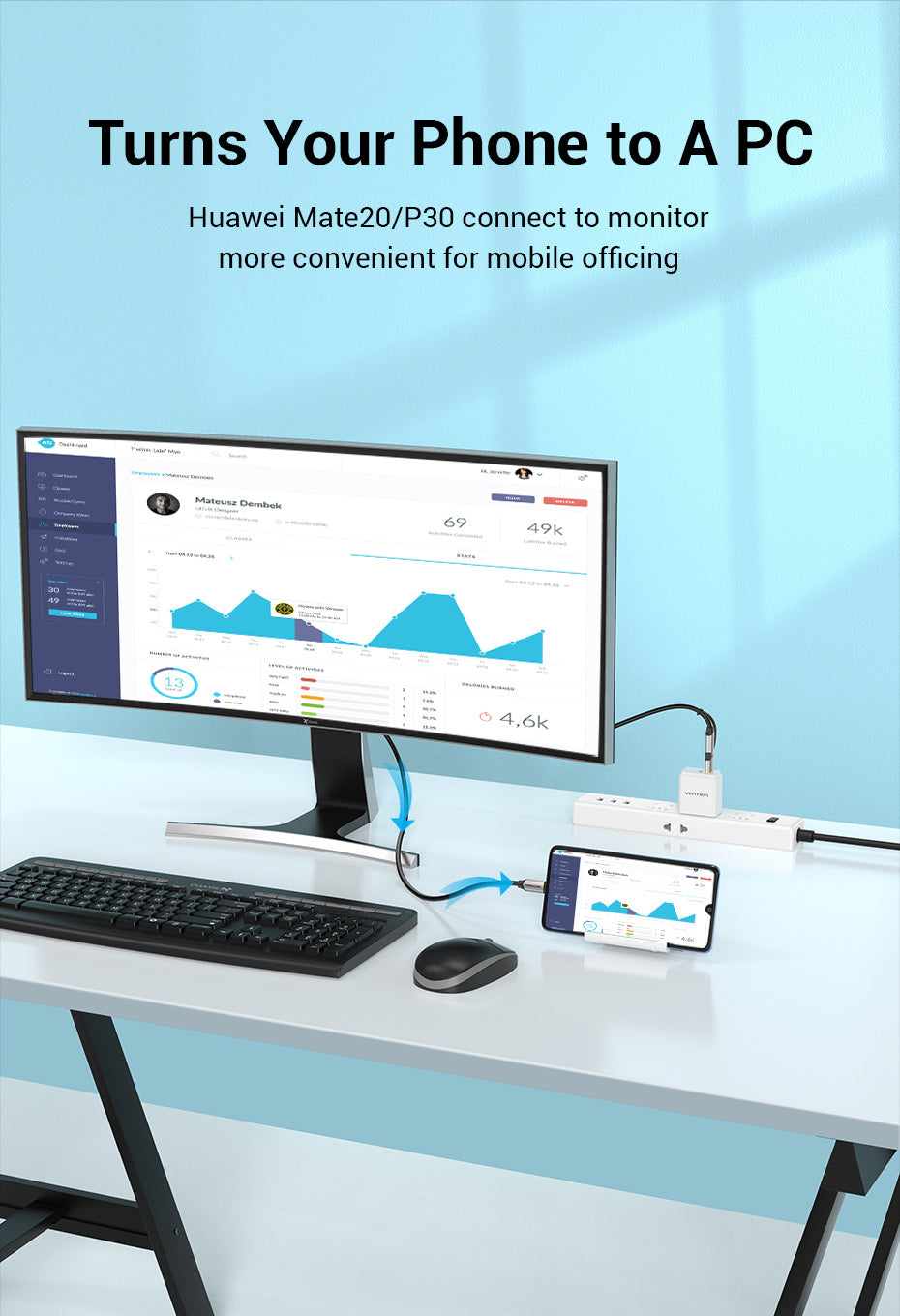 Huawei Mate20/P30 connect to monitor more convenient for mobile officing