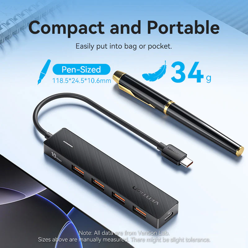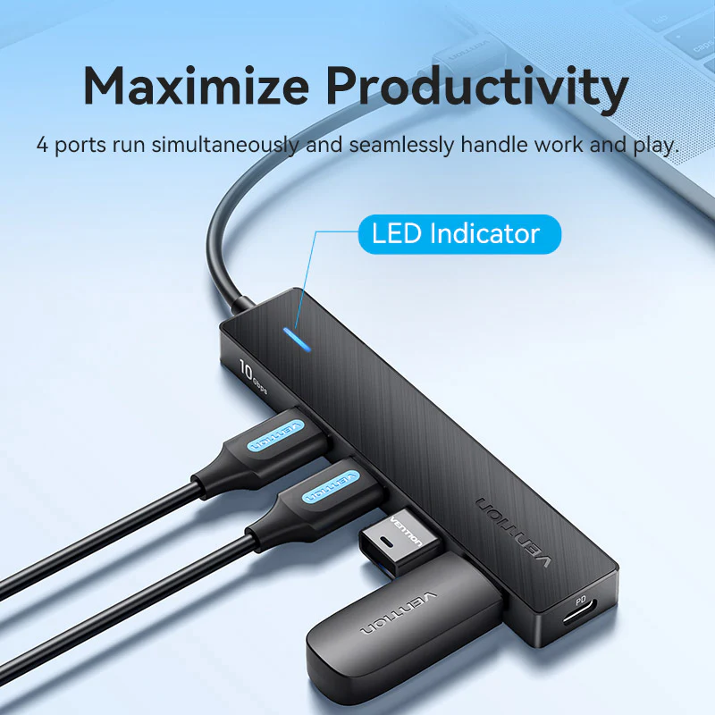 Giới thiệu HUB Mở Rộng Đa Năng USB-C to USB 3.2 Gen 2 Type-A x 4/PD 10G VENTION CKC (100W, 10Gbps)