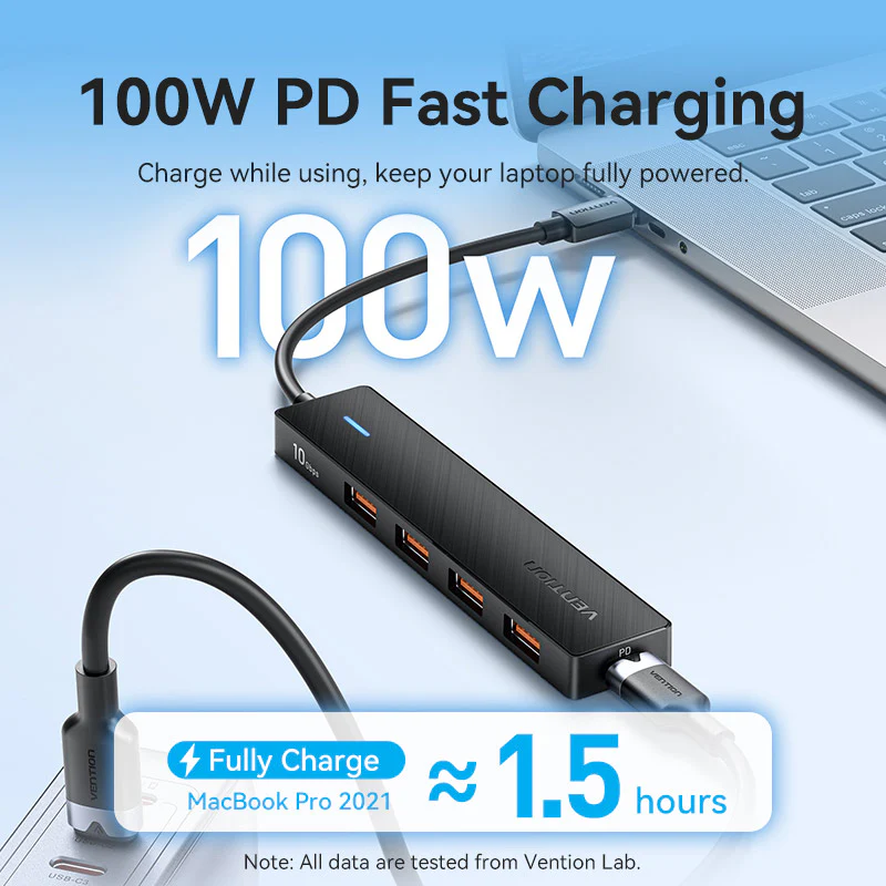 Tính năng HUB Mở Rộng Đa Năng USB-C to USB 3.2 Gen 2 Type-A x 4/PD 10G VENTION CKC (100W, 10Gbps)